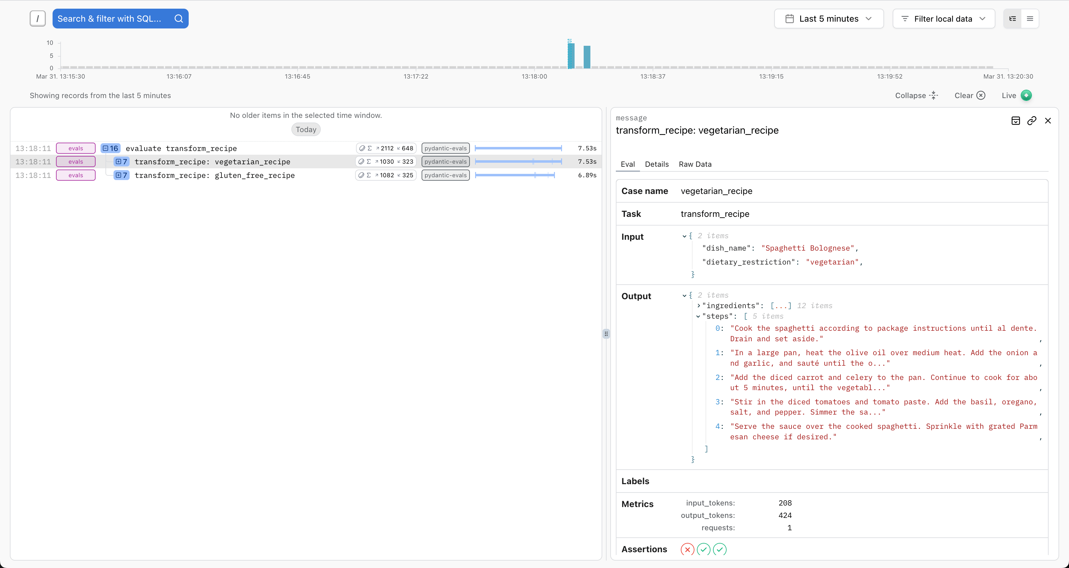 - Dataset creation: Define cases and evaluators in YAML/JSON, or directly in Python